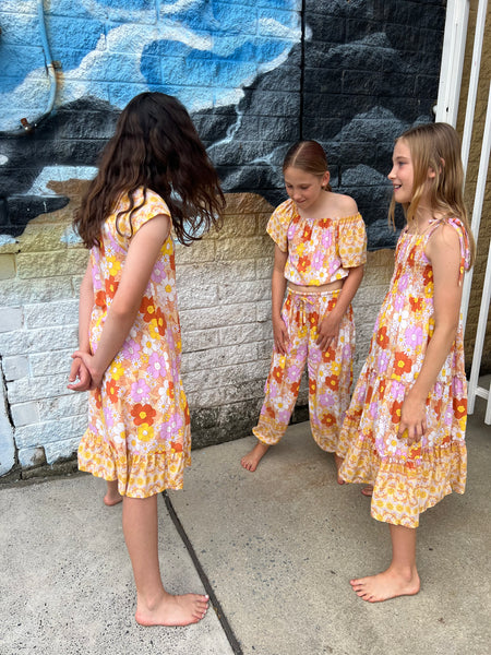 This is one of our signature pieces that we have made from the very beginning and its never disappointing.The Aria dress has the most beautiful twirly skirt in the softest rayon and always a joyous beautiful print.
